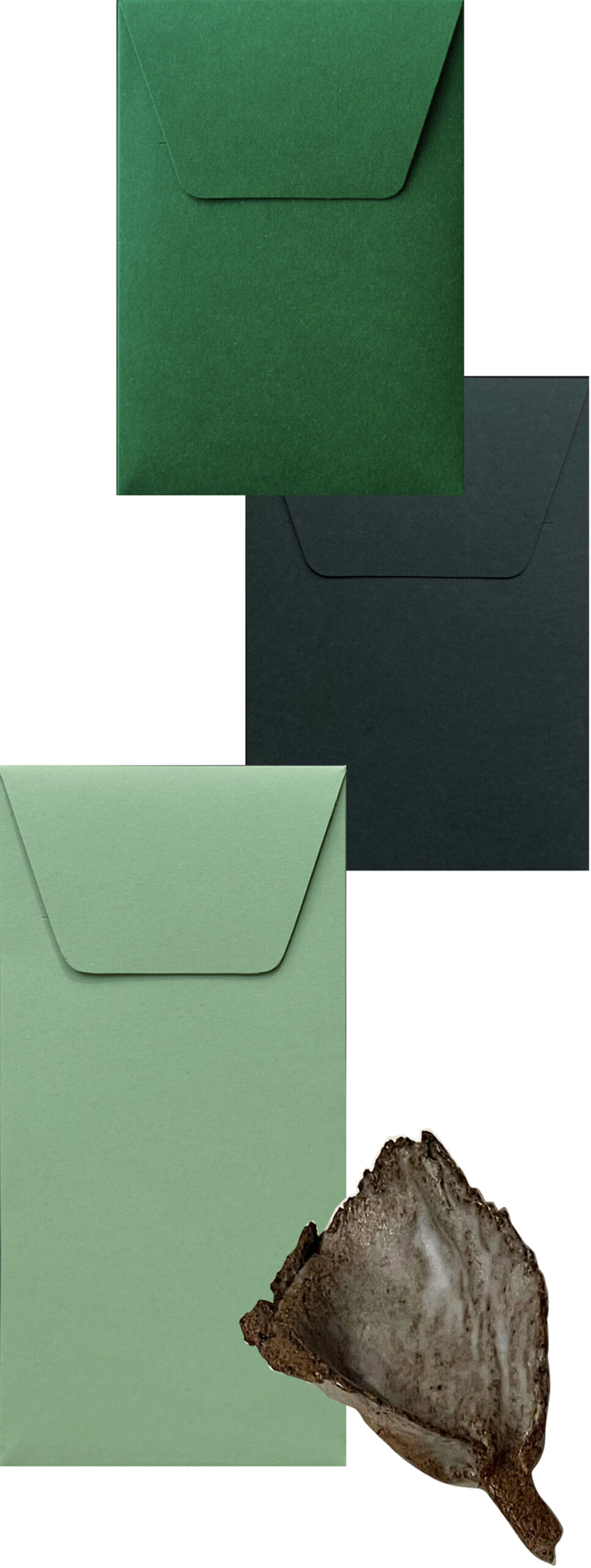 Stedse grønt Gedigne, håndlimede kuverter af 300 grams indfarvet papir. Vil smukt ledsage et brev eller et fint postkort.